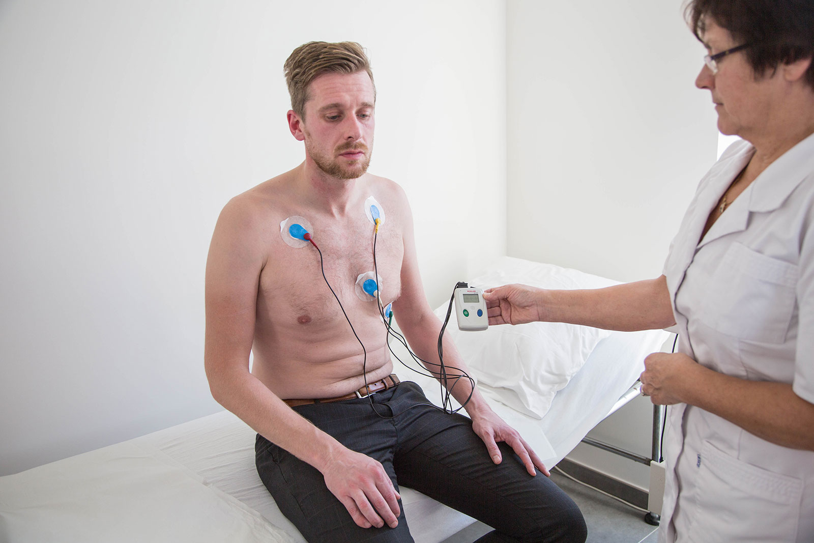 Bij een 24 uur holter monitoring wordt een klein apparaatje onder de kledij aangebracht, dat het electrocardiogram gedurende 24 uren registreert terwijl de patiënt zijn normale dagtaken volbrengt. Op die manier kunnen hartritmestoornissen veel beter opgespoord worden. Tevens is de kans vel groter dat intermittente ver gevorderde atrioventriculaire geleidingsstoornissen kunnen gedetecteerd worden. Ook laat het ons toe eventuele episoden van ischemie en zuurstoftekort van de hartspier te objectiveren.